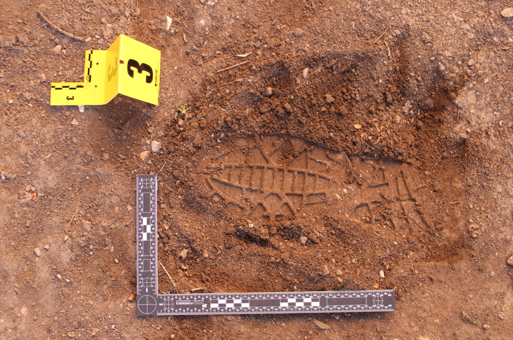 The experiment was conducted outdoors to simulate real-world crime scene conditions, allowing cadets to experience the challenges of fieldwork. They began by preparing the impression site, carefully removing surface debris while preserving the original imprint. Next, they photographed the impressions with a scale for documentation.