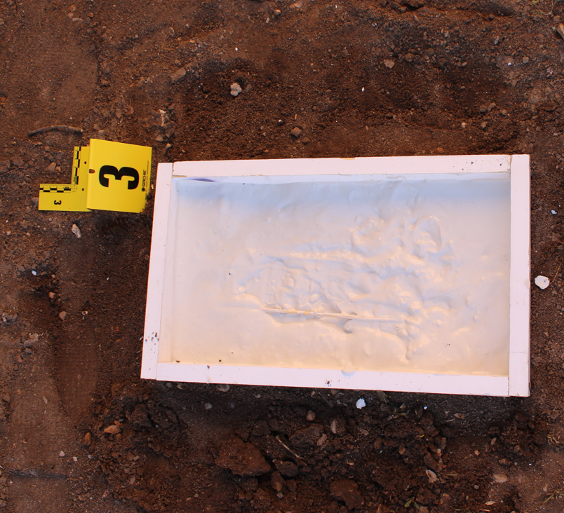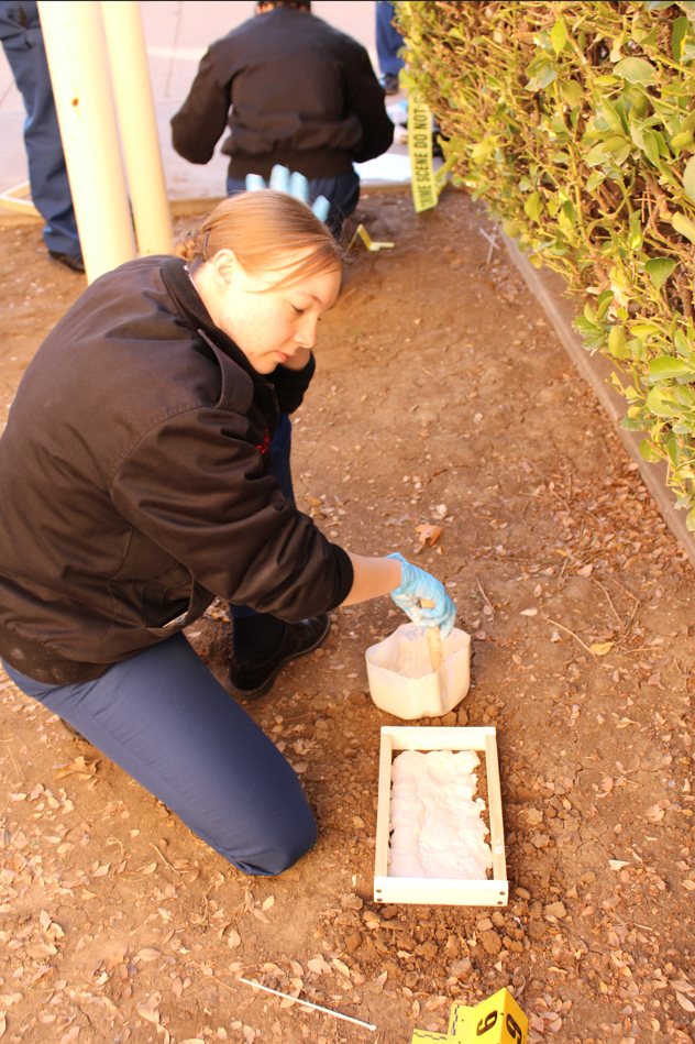 Using plaster of Paris, cadets created molds of the impressions. The mixture was poured carefully over the impressions to avoid disruption, with reinforcement added for durability. Once the casts were set and dried, they were cleaned to reveal the intricate details. Finally, cadets compared the casts to suspected items, such as shoes or tires, to identify similarities in size, design, and manufacturing characteristics.
